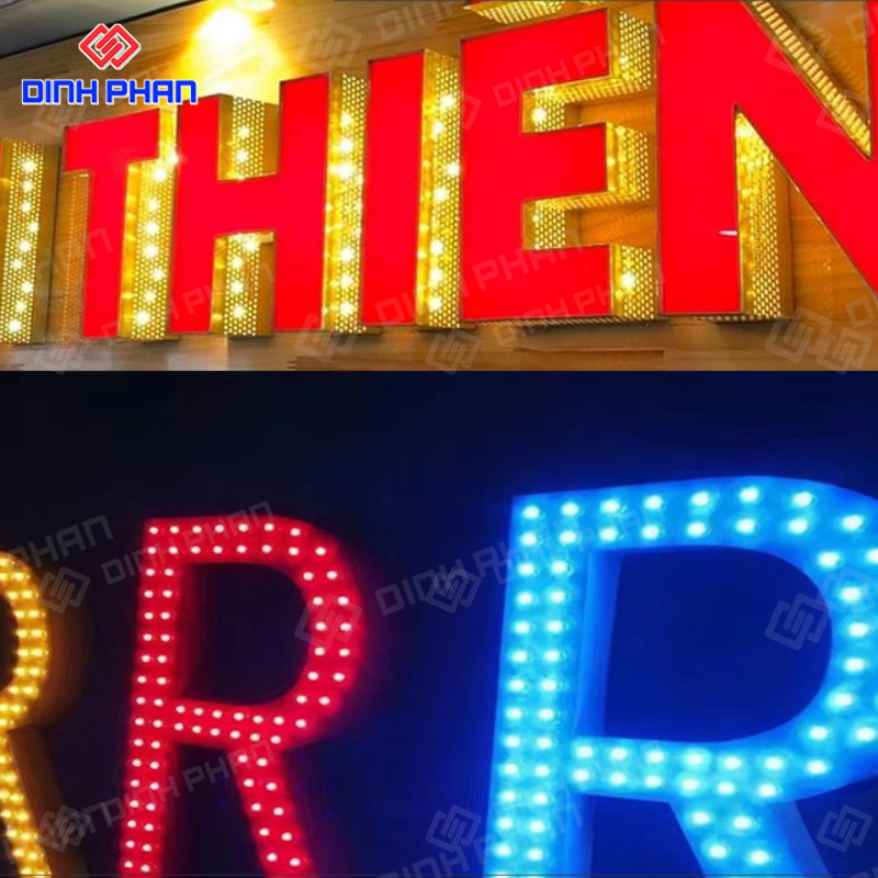 Chữ nổi gắn trên nền alu tạo hiệu ứng 3D, giúp tăng nhận diện thương hiệu cả ban ngày lẫn ban đêm.