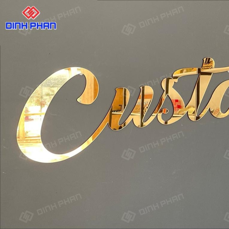 Bề mặt thường phủ sơn ánh kim hoặc film giả đồng. Điều này giúp màu sắc ổn định khi dùng ngoài trời. Sản phẩm xuất hiện nhiều tại showroom và spa. Vì vậy thương hiệu tạo cảm giác tin cậy và chuyên nghiệp hơn. Nhiều cửa hàng cao cấp chọn giải pháp này cho mặt tiền. Nhờ đó không gian kinh doanh trở nên nổi bật hơn.
