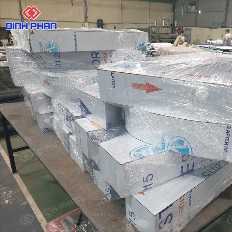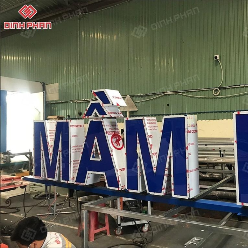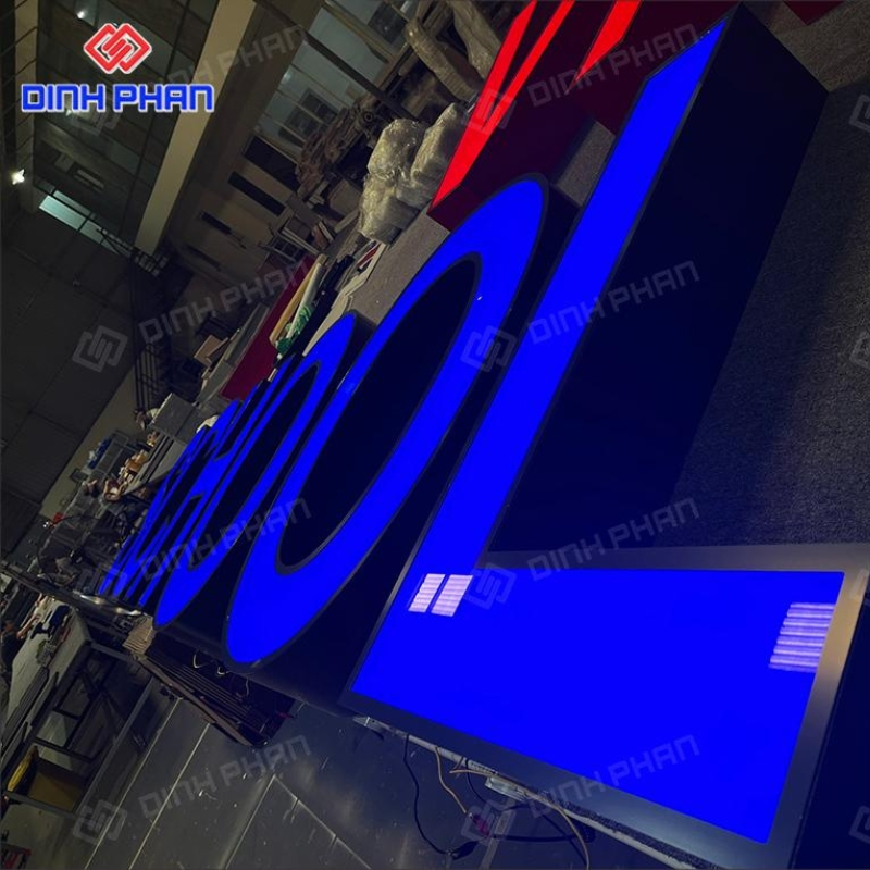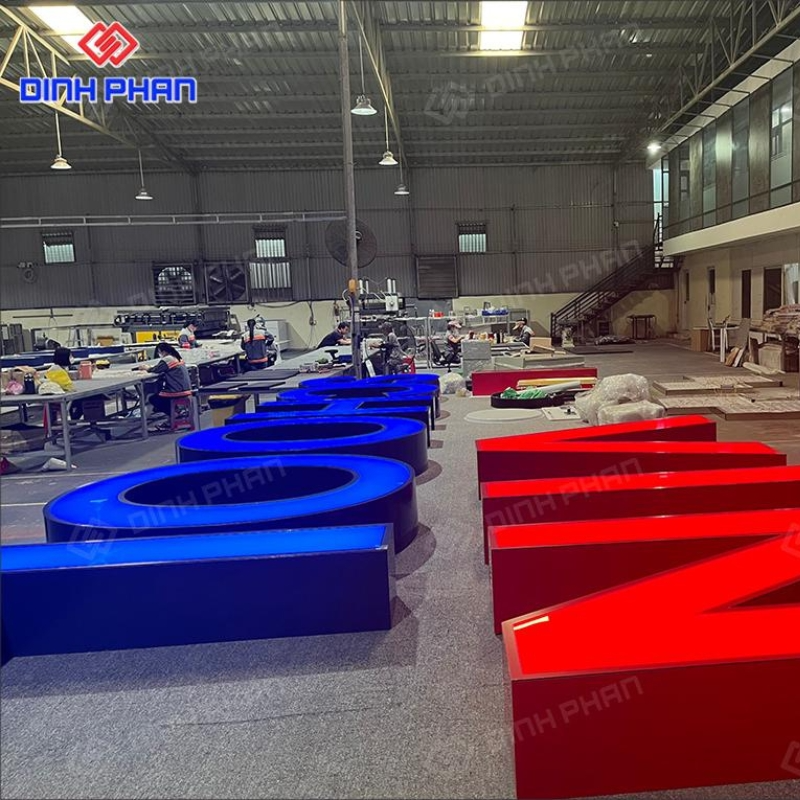 Thợ gia công sử dụng tấm alu làm mặt chữ chính. Vật liệu này bền nhẹ và giữ form ổn định lâu dài. Hệ thống đèn led đặt phía sau chữ nổi. Nhờ vậy ánh sáng phân bổ đều và không gây chói mắt.