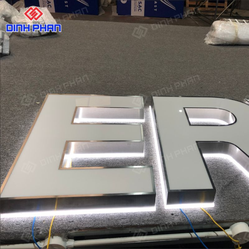 Phần khung chữ được gia công tỉ mỉ từ các loại vật liệu như Inox 304 hoặc Inox 201, đảm bảo độ cứng cáp và vẻ ngoài sáng bóng, sang trọng. Hệ thống chiếu sáng bên trong thường sử dụng đèn LED module siêu sáng, tiết kiệm điện và được kết nối với bộ nguồn 12V an toàn.