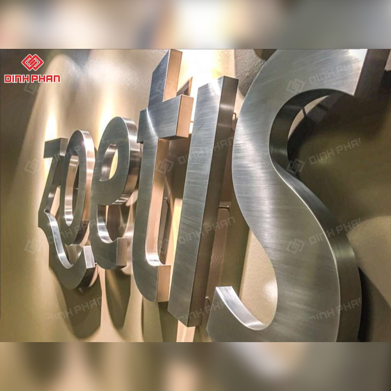 Quy trình gia công chữ inox trắng xước chuyên nghiệp cho phép tạo ra mọi hình dáng, kích thước theo yêu cầu thiết kế.