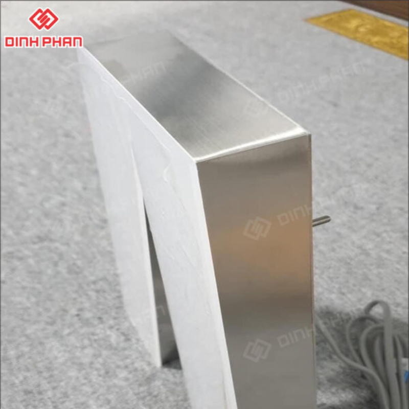 Chữ inox trắng xước là loại chữ nổi quảng cáo được gia công từ tấm inox nguyên khối, thường là inox 304 hoặc inox 201, và được xử lý bề mặt để tạo ra các đường xước ngang mịn, đồng đều, hay còn gọi là bề mặt xước hairline. Đặc điểm này không chỉ tạo nên hiệu ứng thị giác độc đáo, giảm độ chói của kim loại mà còn mang lại cảm giác sang trọng, tinh xảo.