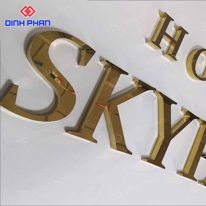 Chữ inox vàng đồng thực chất là loại chữ nổi được gia công từ vật liệu inox, sau đó được mạ một lớp màu vàng đồng sang trọng bằng công nghệ PVD tiên tiến. Màu vàng đồng mang đến vẻ đẹp cổ điển, ấm áp nhưng không kém phần hiện đại, tạo nên một dấu ấn riêng biệt và cuốn hút.