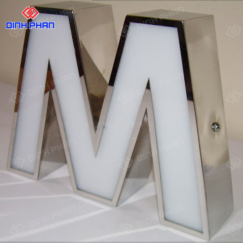 Đây là một dạng chữ nổi quảng cáo cao cấp, được cấu tạo từ hai vật liệu chính là mica và inox. Cụ thể, sản phẩm có phần mặt chữ được làm từ tấm nhựa mica xuyên sáng hoặc không xuyên sáng, trong khi phần viền (hông) chữ được gia công chính xác từ inox.
