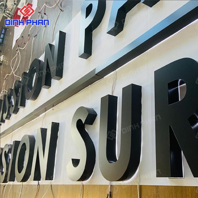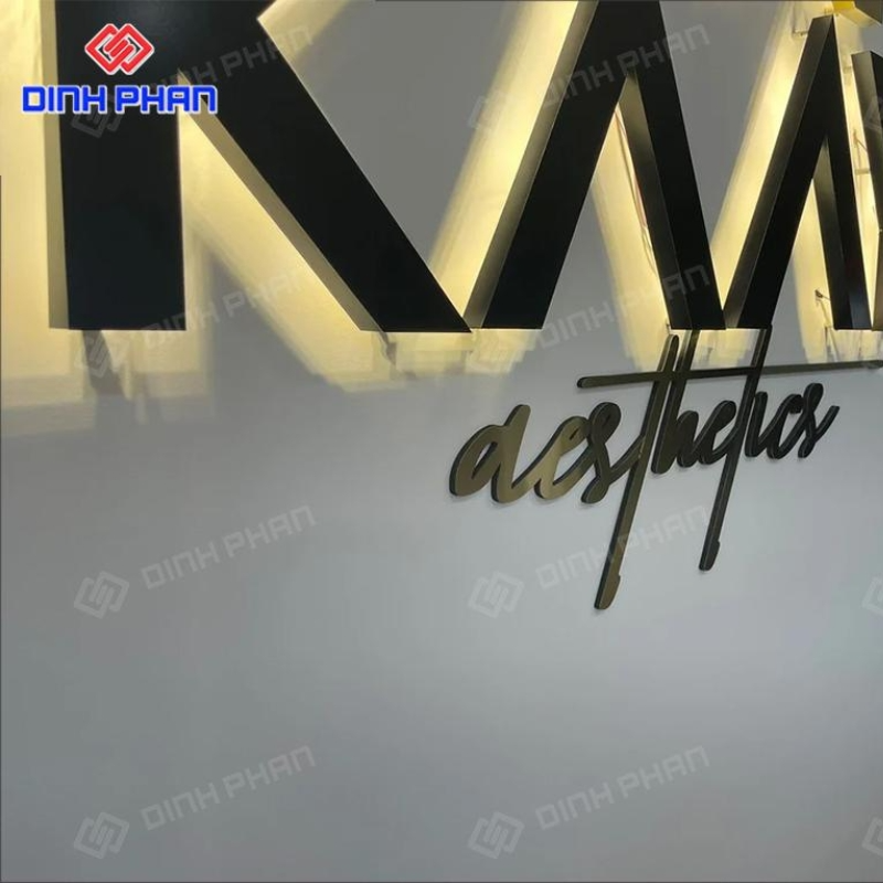 Đây là dạng chữ nổi được gia công từ vật liệu nhôm tấm, phần mặt và hông được xử lý liền khối, không tạo gờ bo viền như các mẫu chữ nhôm truyền thống. Nhờ cấu trúc phẳng, đường nét sắc sảo, loại chữ này mang phong cách hiện đại, tối giản và rất phù hợp với các bảng hiệu showroom, văn phòng, cửa hàng cao cấp.