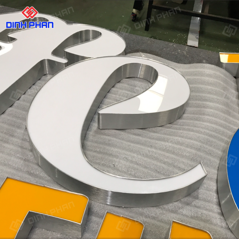 Ưu điểm lớn nhất của dòng chữ này là tính thẩm mỹ cao, phù hợp với nhiều phong cách thiết kế từ hiện đại đến tối giản. Bề mặt xước giúp che vết trầy nhỏ, giữ cho chữ luôn đẹp trong thời gian dài. Ngoài ra, nhôm là vật liệu nhẹ, chống oxy hóa tốt, không bị gỉ sét khi sử dụng ngoài trời. Khả năng kết hợp với đèn LED hắt sáng cũng giúp bảng hiệu trở nên ấn tượng hơn vào ban đêm mà vẫn tiết kiệm điện năng.
