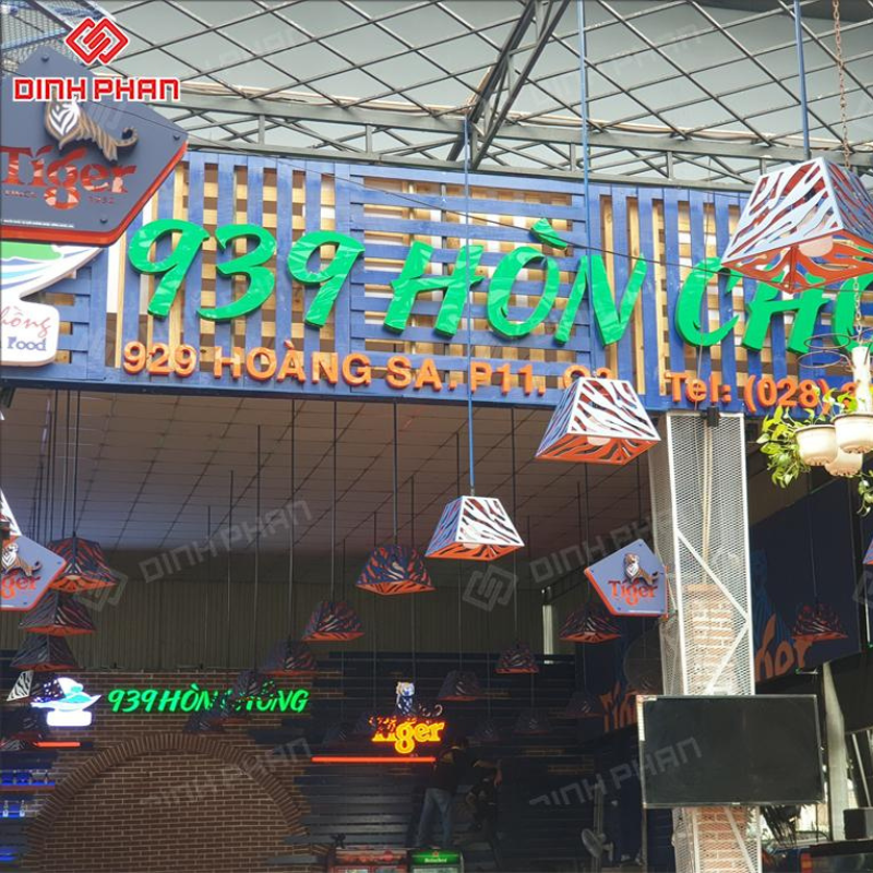 Thiết kế chữ linh hoạt theo logo và phong cách thương hiệu. Do đó cửa hàng tạo dấu ấn rõ ràng với khách mới. Sản phẩm dùng tốt cho quán ăn cửa hàng và showroom. Nhờ đó thương hiệu hiển thị rõ ràng cả ngày lẫn đêm.
