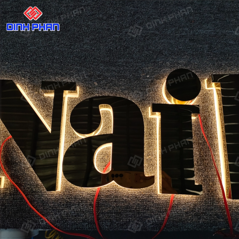 Hoàn toàn được. Có hai cách phổ biến: LED hắt sáng chân (tạo quầng sáng xung quanh chữ) hoặc cắt lồng mặt mica để ánh sáng xuyên qua mặt chữ.